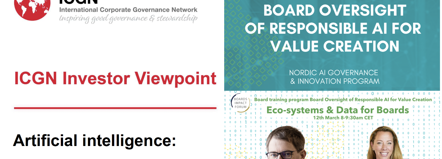 Boards need to ensure competence and oversight to respond to coming Investor questions from new AI engagement Guide by ICGN Investor Corporate Governance Network ICGN launches Engagement Guide for Artificial Intelligence ICGN, International Corporate Governance Network, the Investor Association led by investors in 45 countries responsible for assets under management of around US$77 trillion, including has just released the Artificial intelligence: An engagement guide, guiding the … Continue reading Boards Must Ensure New Competences to Address Investor Inquiries Following ICGN’s Latest AI Engagement Guidelines