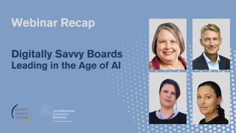 As artificial intelligence transforms industries, markets, and business models, boards are increasingly expected to evolve from digital literacy to true AI-savviness. On June 18, Boards Impact Forum, in partnership with the Scandinavian Executive Institute, hosted a forward-looking webinar on how boards can lead confidently and responsibly in the age of AI.