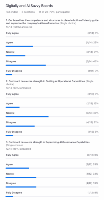 Few participants fully agreed that their boards had the structure and skills to guide AI transformation.