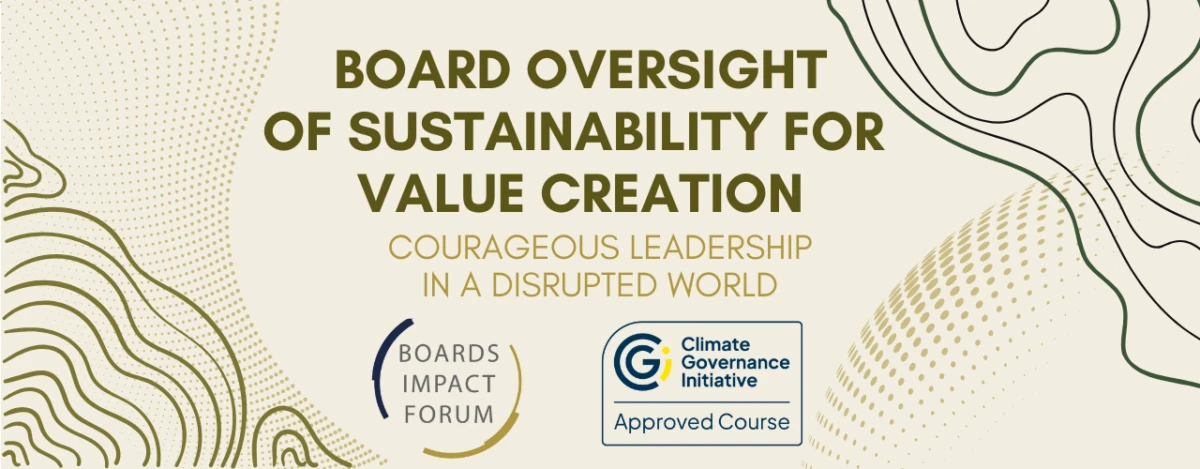 You can also sign up for a prompt of the start of the next Boards Oversight of Sustainability program here A prompt of the start of the next Boards Sustainability program, the next Boards oversight of Responsible AI program here A prompt of the start of the next Boards AI program .